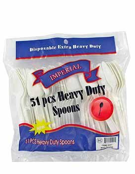 This 51 piece bag of heavy duty plastic spoons is perfect for picnics and parties. There are only spoons in this bag. Item is packaged in a poly bag with hanging hole. Each spoon measures approximately 5 1/2" long Case Pack 48 Please note: If there is a color/size/type option, the option closest to the image will be shipped (Or you may receive a random color/size/type).